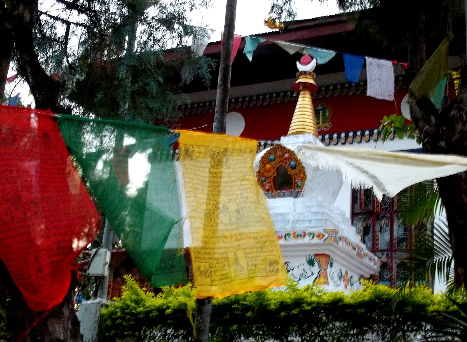 skies, the soft colours of prayer flags, and in that frame, the golden threads